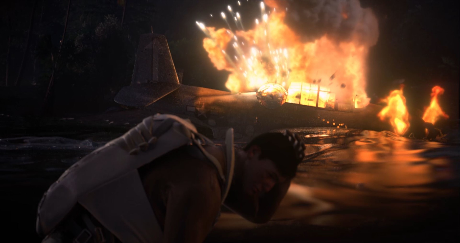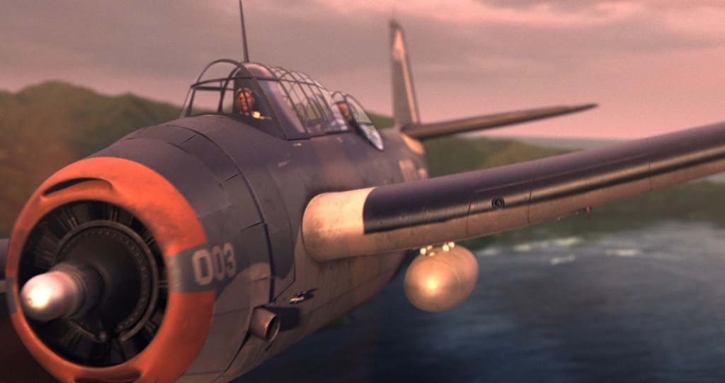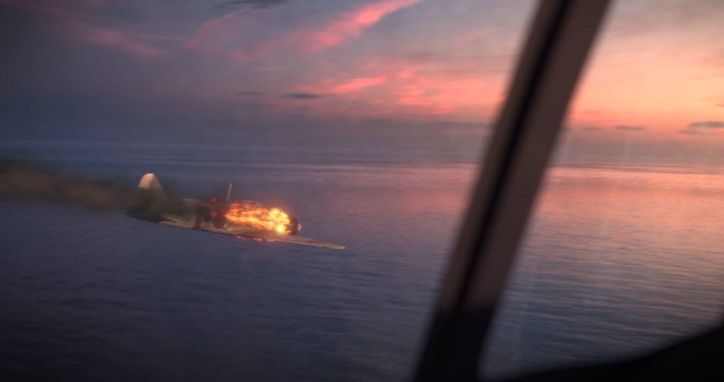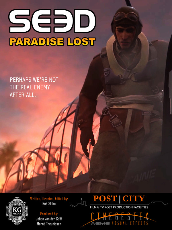 In 1942, the three man crew of a TBF Avenger is attacked by two Japanese Zeroes as they fly over the Solomon Islands on a Top Secret survey mission. The plane crash lands in a shallow river. Lieutenant Caine, the pilot and only surviving member of the crew then gets attacked by three Japanese ground troops. As he attempts to defend himself, a giant creature emerges from the jungle and takes out two of his opponents. Now out of ammo, Lieutenant Caine and the remaining Japanese soldier prepare to engage in close quarter combat. But they both realize enough blood has already been shed. Their friends were gone. Paradise was lost. And perhaps… they weren’t the real enemy after all.